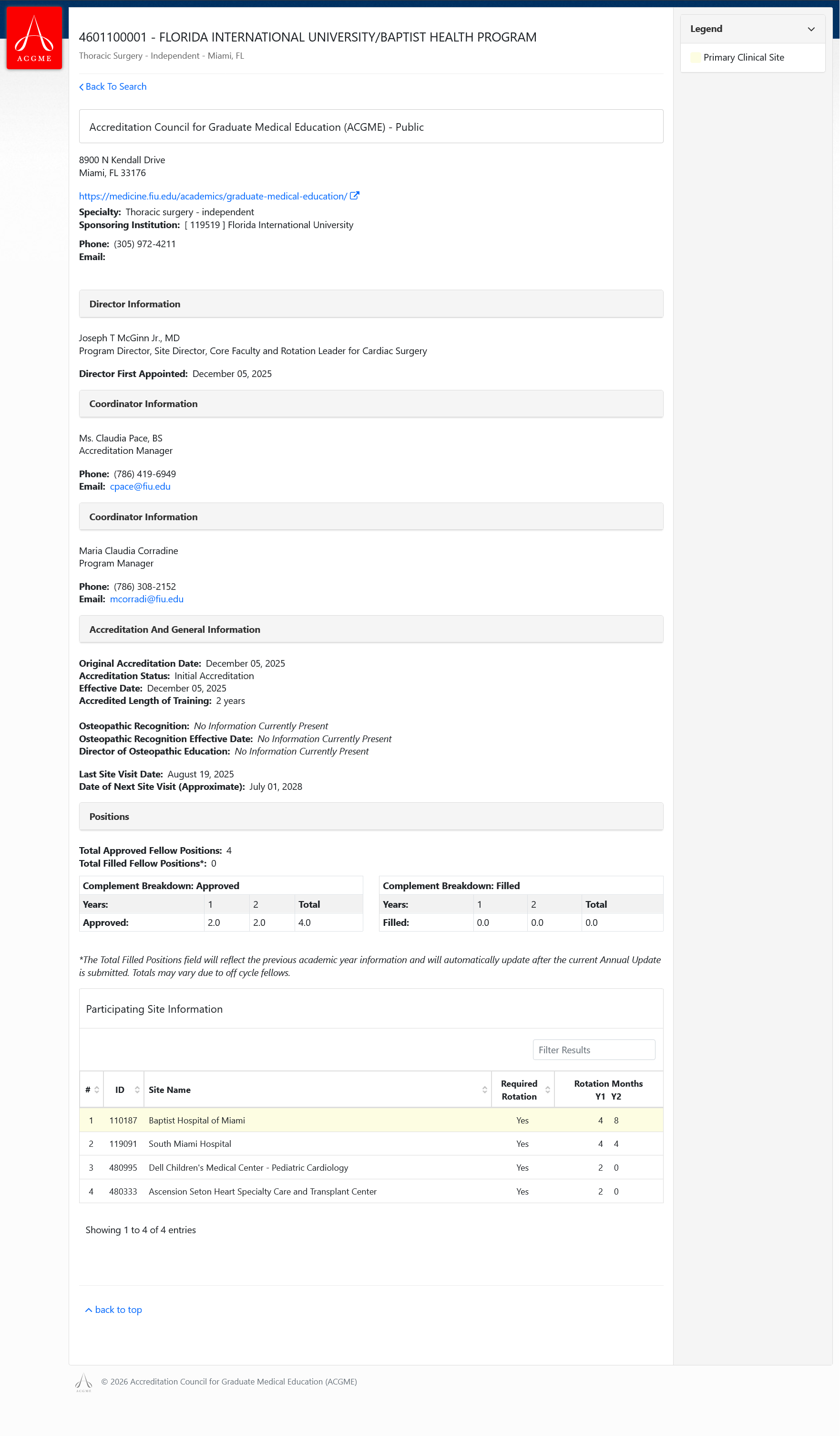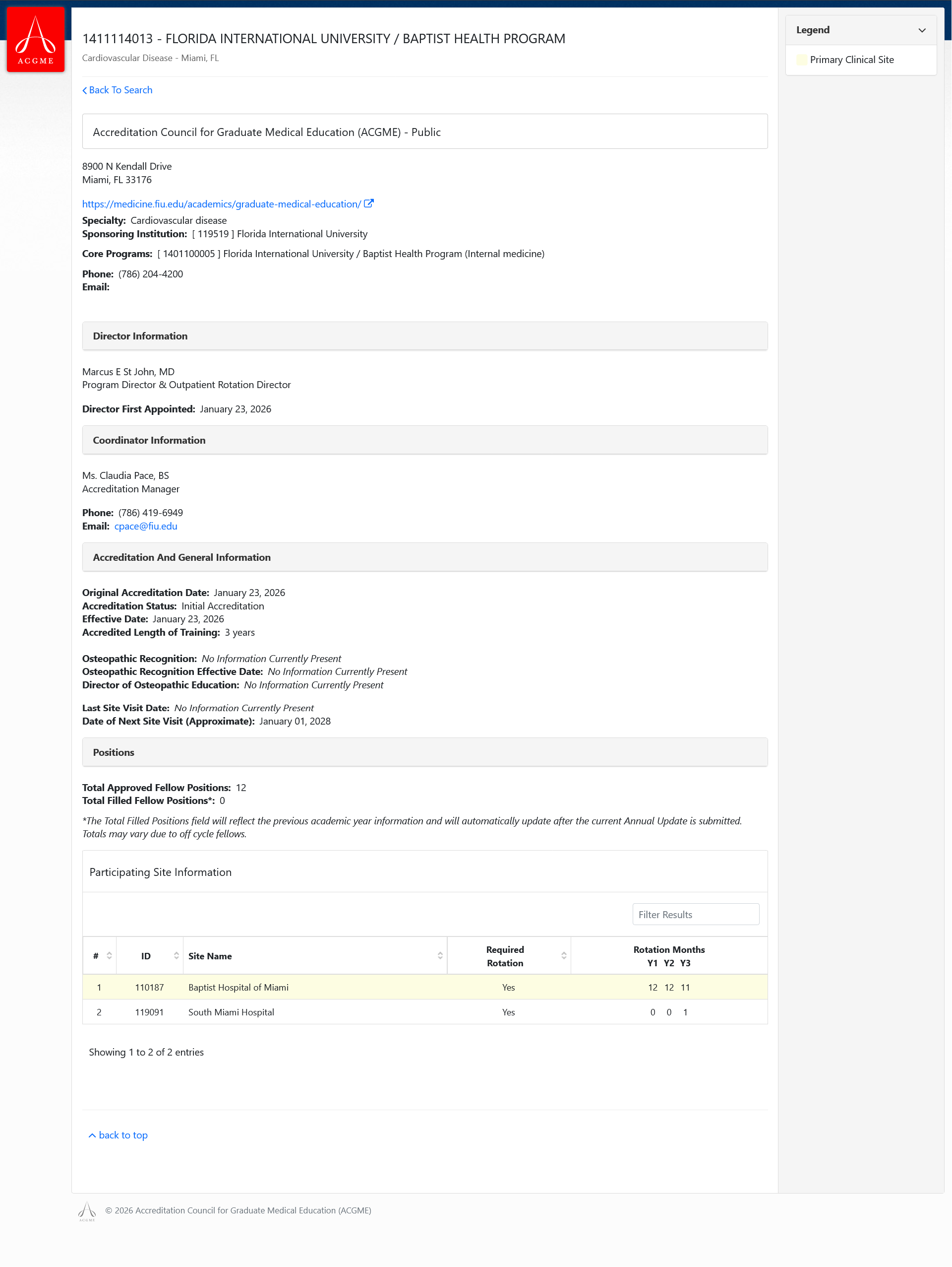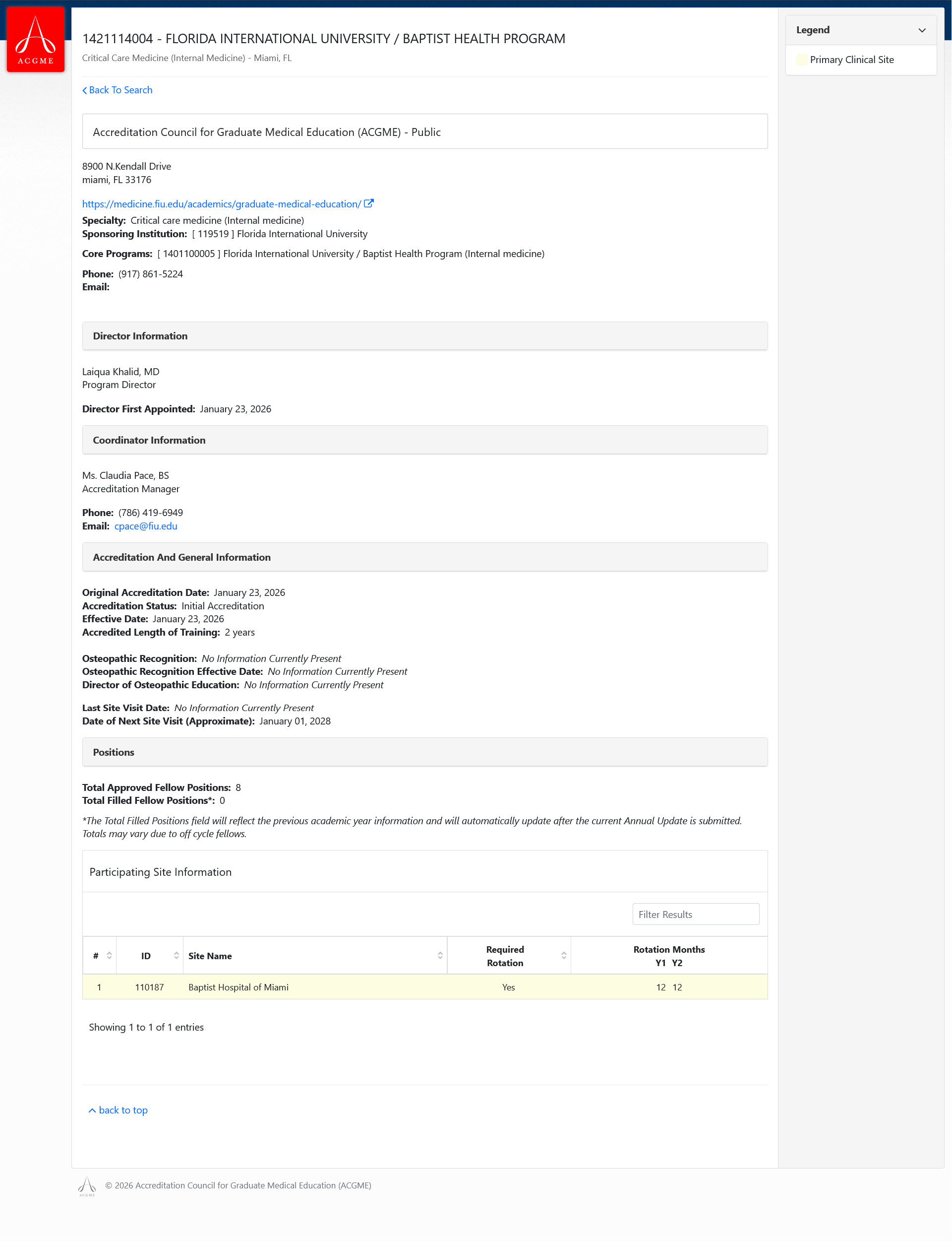 Accreditation Council for Graduate Medical Education | Internal Medicine Residency (Miami Veterans Affairs Health System) | NA | TBD | ||