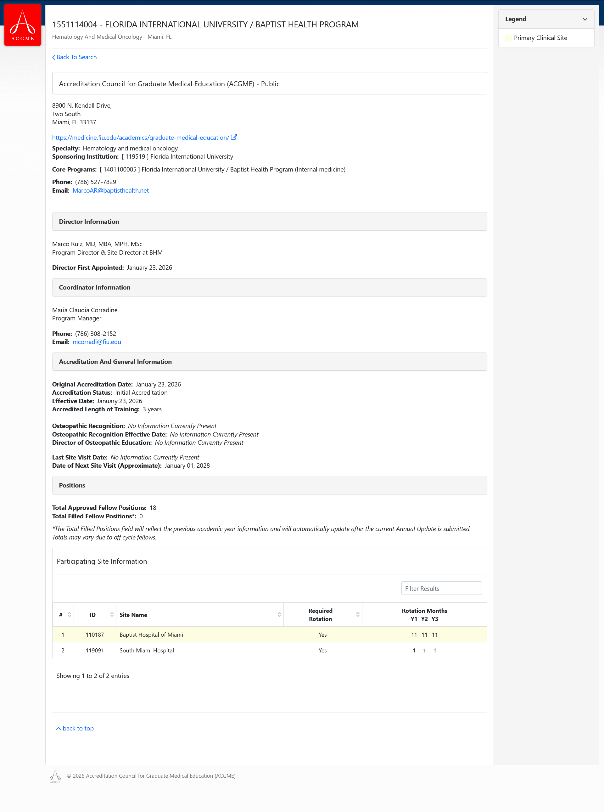 Accreditation Council for Graduate Medical Education | Internal Medicine Residency (Baptist Health South Florida) | NA | TBD | ||